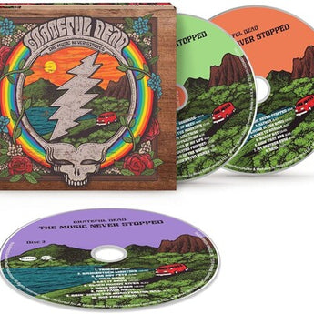 Three CD set. Narrowing down The Grateful Dead's touring career and live performances to 60 CDs, 20 venues, and more than 450 songs is hard enough. Narrowing THAT down for 3CD and 6LP sets is a monumental undertaking, but with so much great music to select from, it's one of the most enjoyable compilations we've ever assembled. This nearly four hour collection contains one song (or two, or three...) from every show in the Dead's new road tripping boxed set, ENJOYING THE RIDE, which brings together music from 20 (21...) of the most essential venues in Grateful Dead and Dead Head history. This compilation is crafted with songs spanning the 25 years in the boxed set, 1969-1994. Drawn from such iconic venues as Red Rocks, Frost Amphitheatre, Greek Theatre, Fillmores East and West, Madison Square Garden, Alpine Valley, and many more, THE MUSIC NEVER STOPPED features such classics as "Truckin'," "Eyes Of The World," "Scarlet Begonias," the title track, and plenty of under the radar tracks like "Big Boy Pete," "My Brother Esau," and "Doin' That Rag." This is a career-defining live collection filled with some of the greatest tracks performed at their greatest venues. - David Lemieux